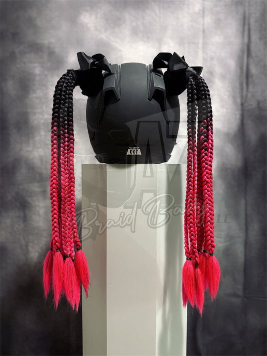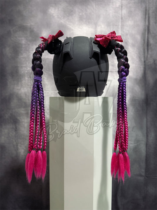 I hand-braid each order with love, using pre-dyed synthetic hair, assembled onto my very own (patent pending) AZBB mounting system. I've designed these helmet mounts so you can enjoy high quality, customizable, interchangeable helmet braids for a long time! Interchangeable helmet braids - because who doesn't like having options!?
